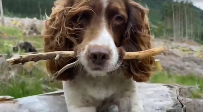 A Springer Spaniel has made headlines, as he was joined by a huge crowd of dogs and their owners for a walk in Keswick to celebrate his 14th birthday.