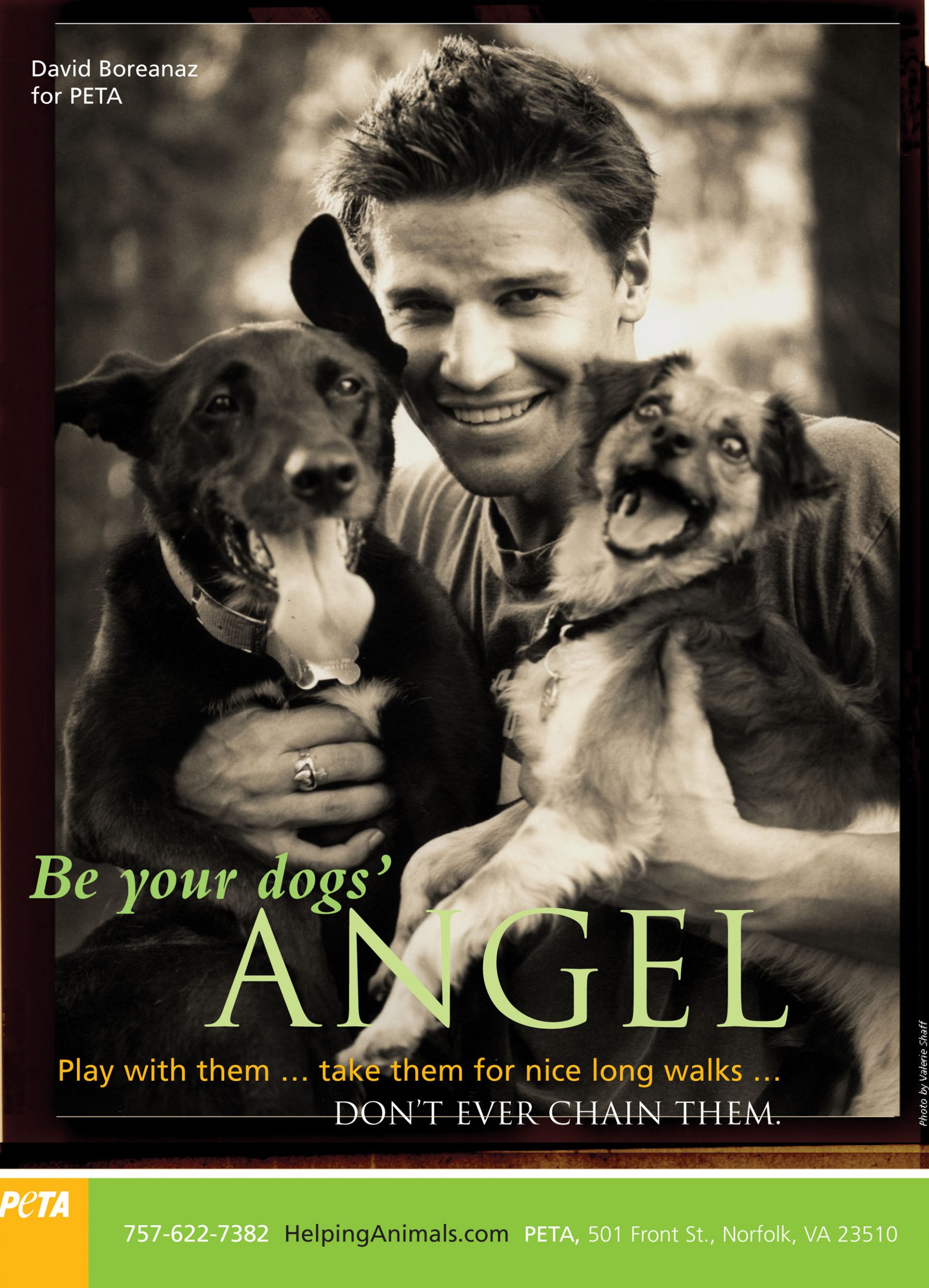 Due to David being discovered while walking his dog, he was the obvious choice for the following PETA campaign promoting looking after your dogs and taking them for walks.