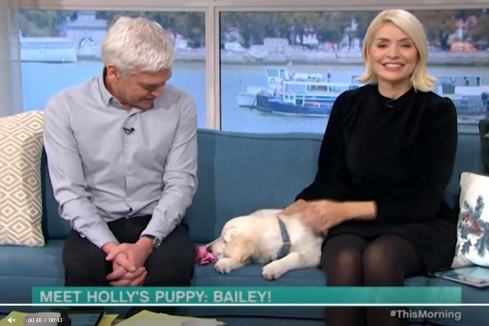This Morning presenter Holly Willoughby has introduced her new pup to the programme’s viewers, as the Golden Retriever took a seat on the famous sofa for the first time.