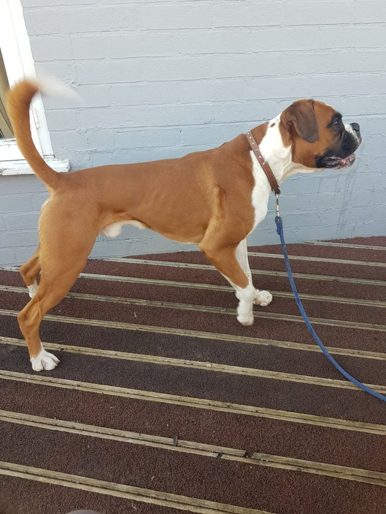 Aged 15 months red and Fawn in colour, with a long tail, extremely good natured, house trained and very, very playful has last month received all his annual jabs and declared fit by his vet