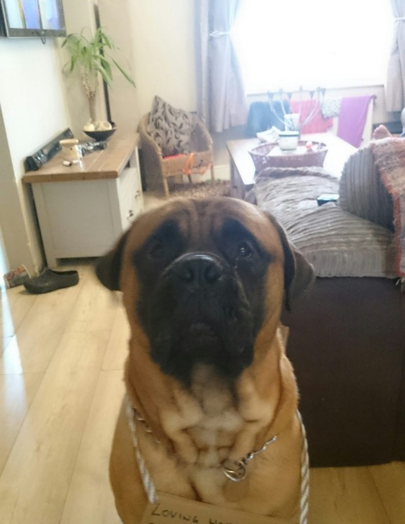 He is in good health and very active with the normal bullmastiff personality.