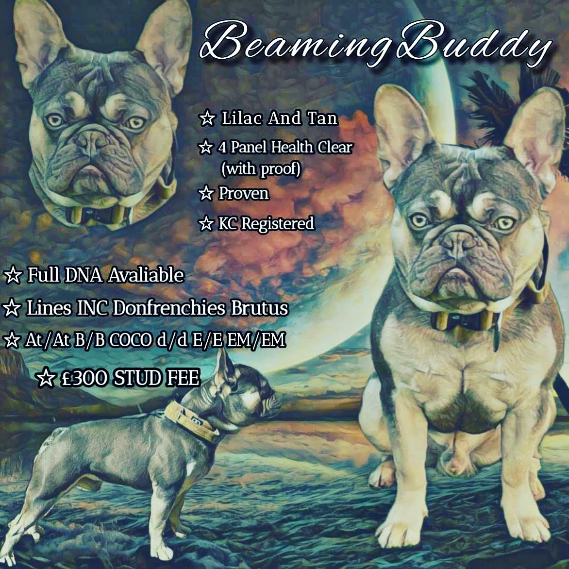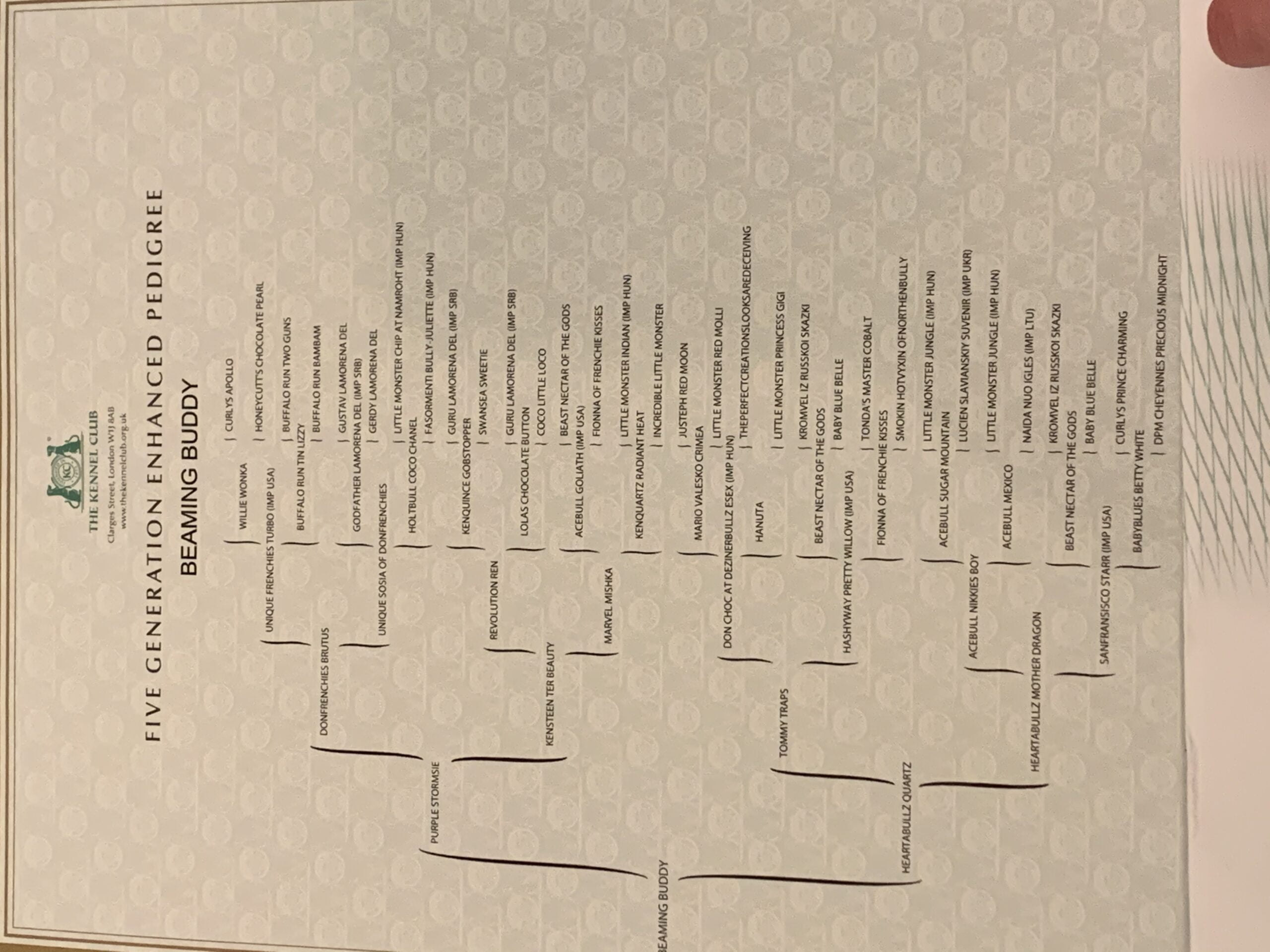 Please see photos for Buddy’s 5 generation family tree some top names in the french bulldog field not to be missed!!!!!