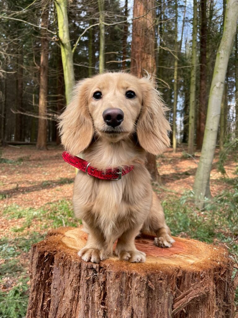 **PRIZE PRINCE** is our beloved family pet and proven stud dog, stunning cream Miniature dachshund, with the best loving and affectionate nature, He is KC registered with FIVE generation pedigree, champions in his bloodline.
