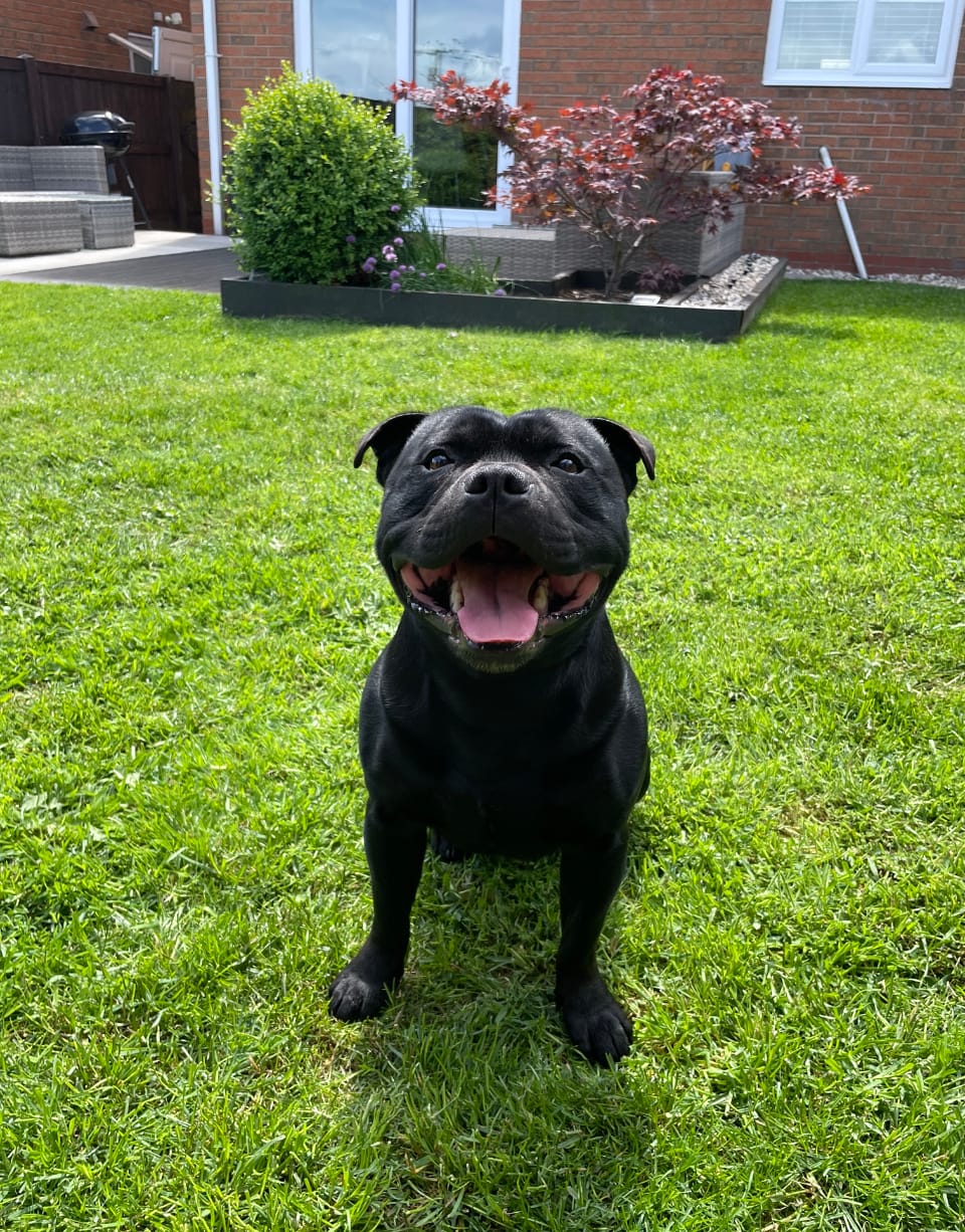 The Staffy King is the most loving, affectionate paw giving Staffordshire Bull Terrier we have ever owned in our thirty plus years history with this breed. He is full of life and out of the 6 Staffordshire Bull Terriers we have owned he’s the most energetic and athletic by a distance. His favourite meal is raw meat especially tripe with a mix of veg. He loves walks and fetch with his ball and loves meeting friendly dogs. He lives with his Mum and they are our family pets.