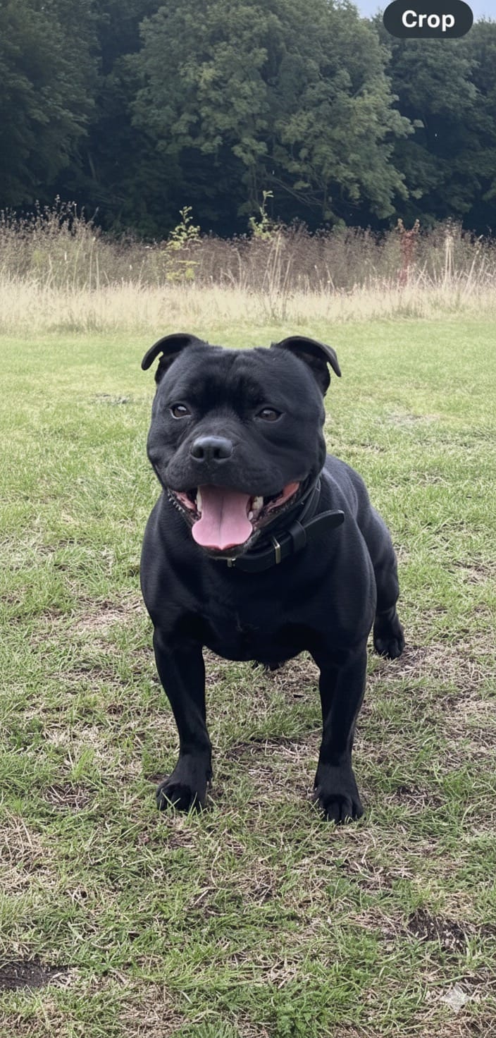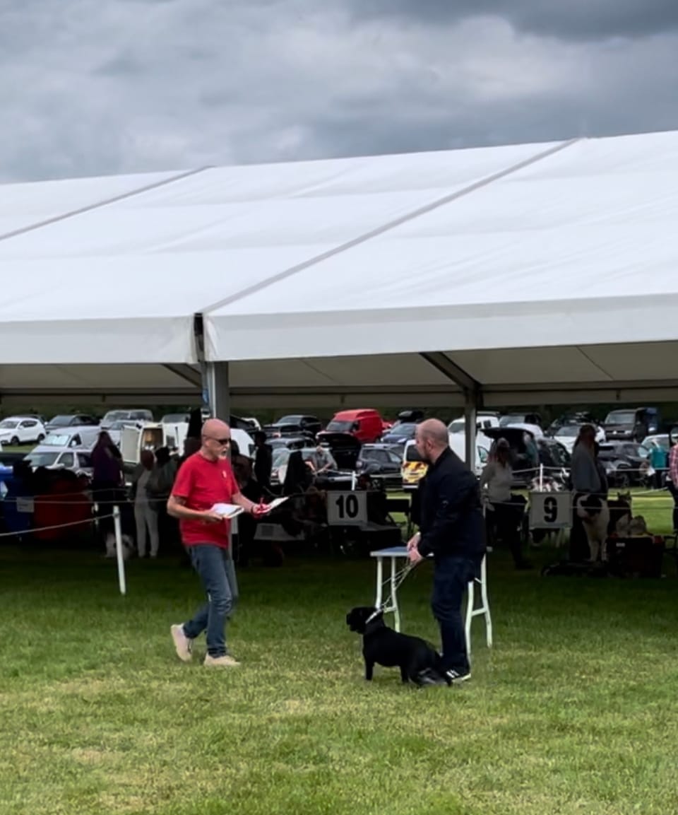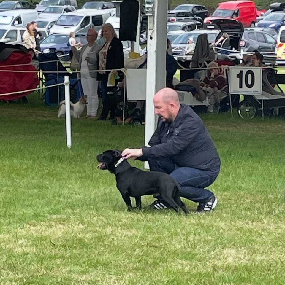 Just recently he started his show career in July 2025 and was awarded 1st place in the post graduate class in his very first kennel club Staffordshire bull terrier show. He has recently been placed 4th in his second show.