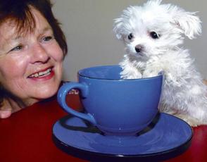 As you can see from this picture, which has catapulted the Maltese puppy to fame this week, Ms McKnight has cups of tea larger than her dog.